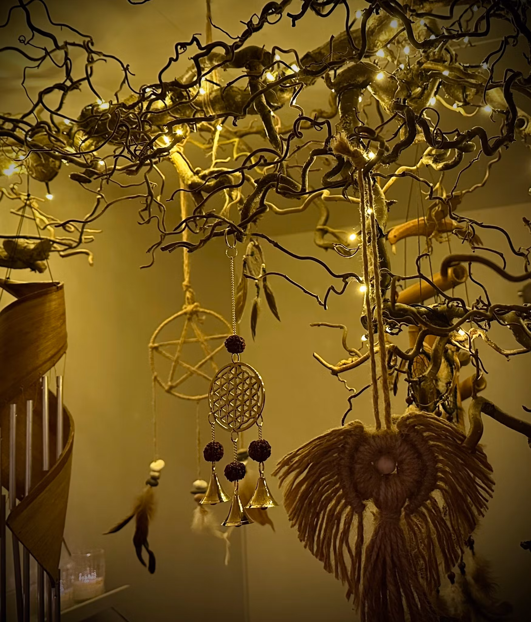 Handgjorda med Livets Blomma och Rudraksha frö, designade för att producera harmoniska, lugnande ljud.