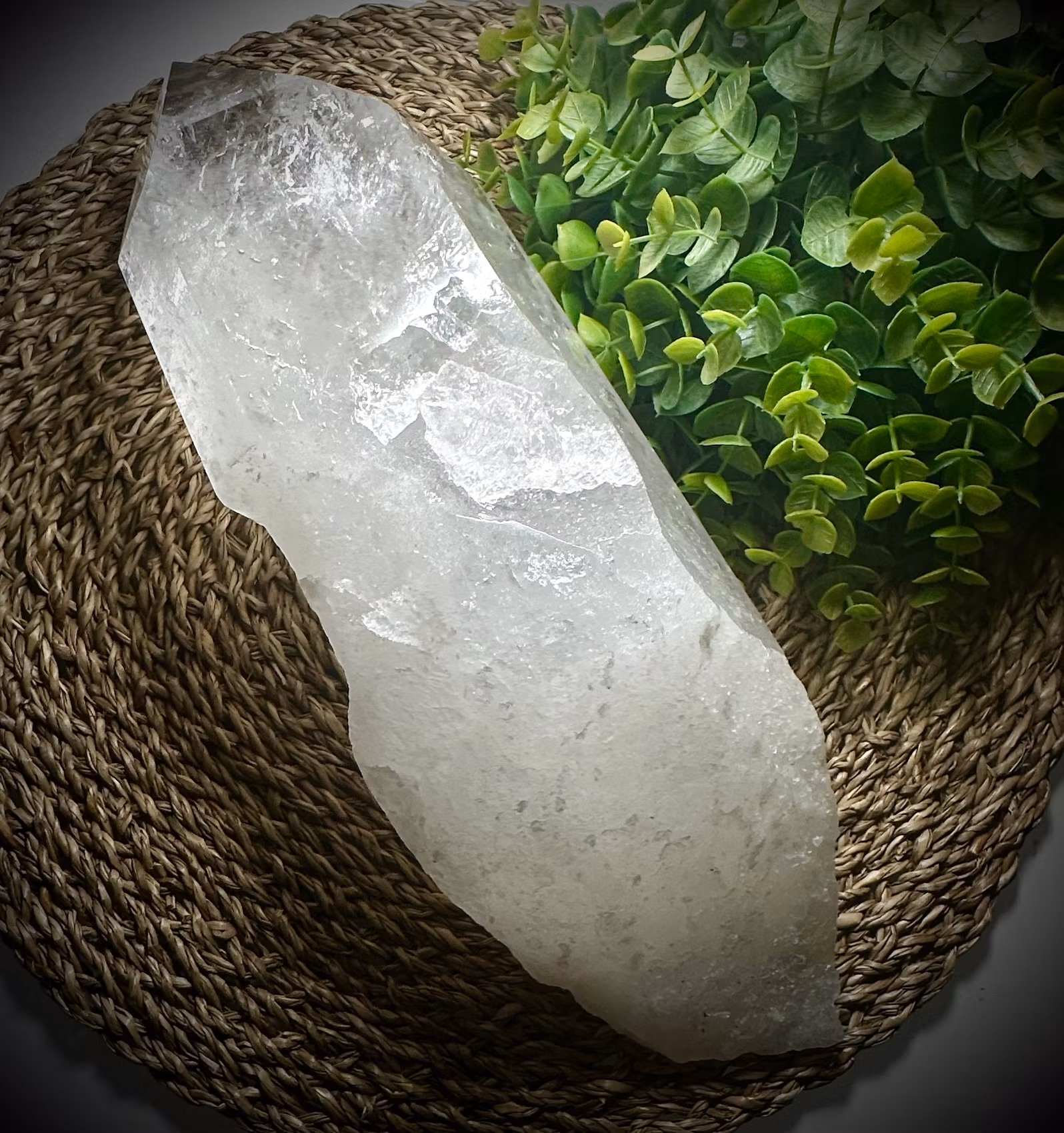Bergkristallen är polerad där man valt att behålla vissa naturliga råa partier.
