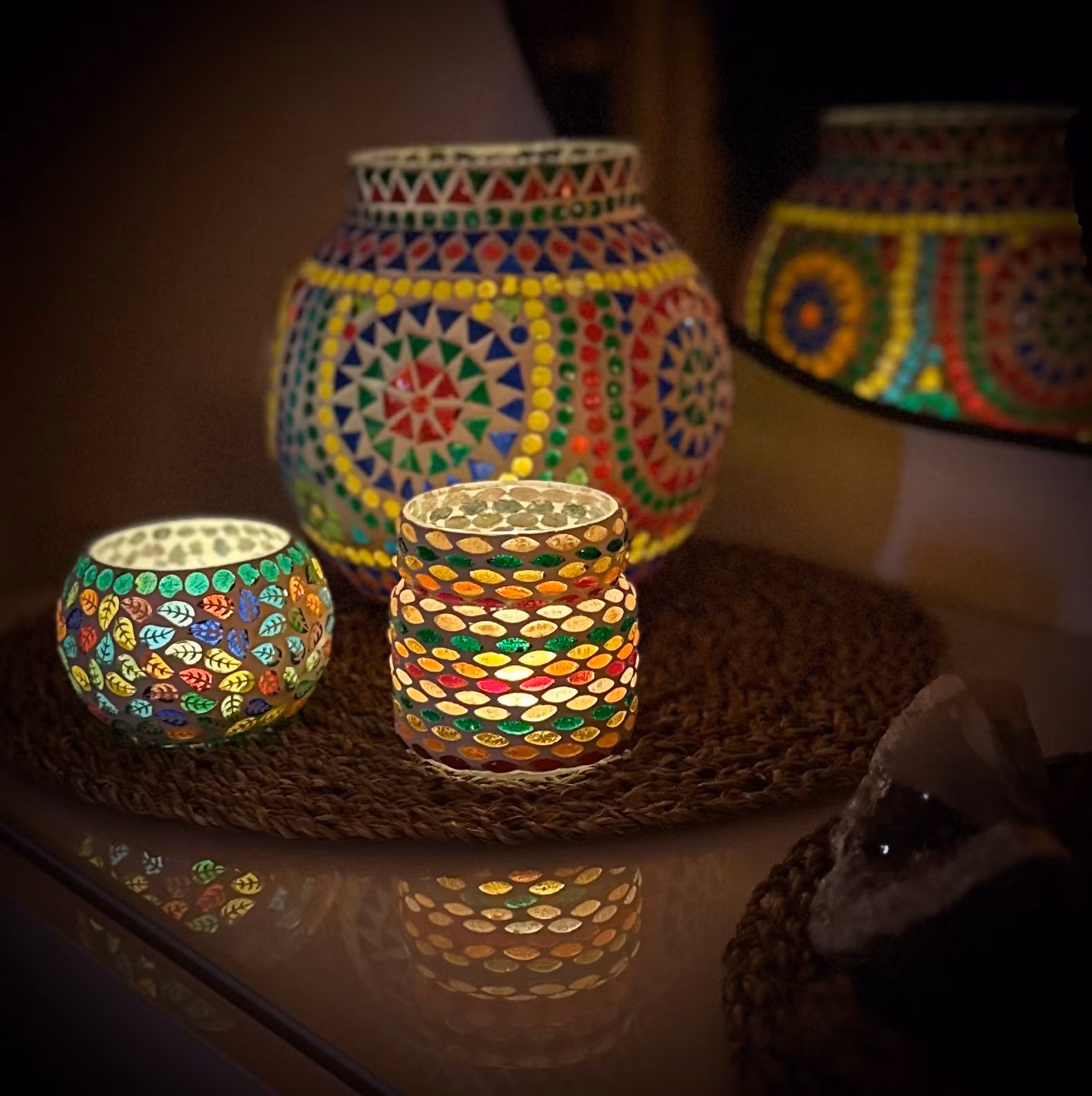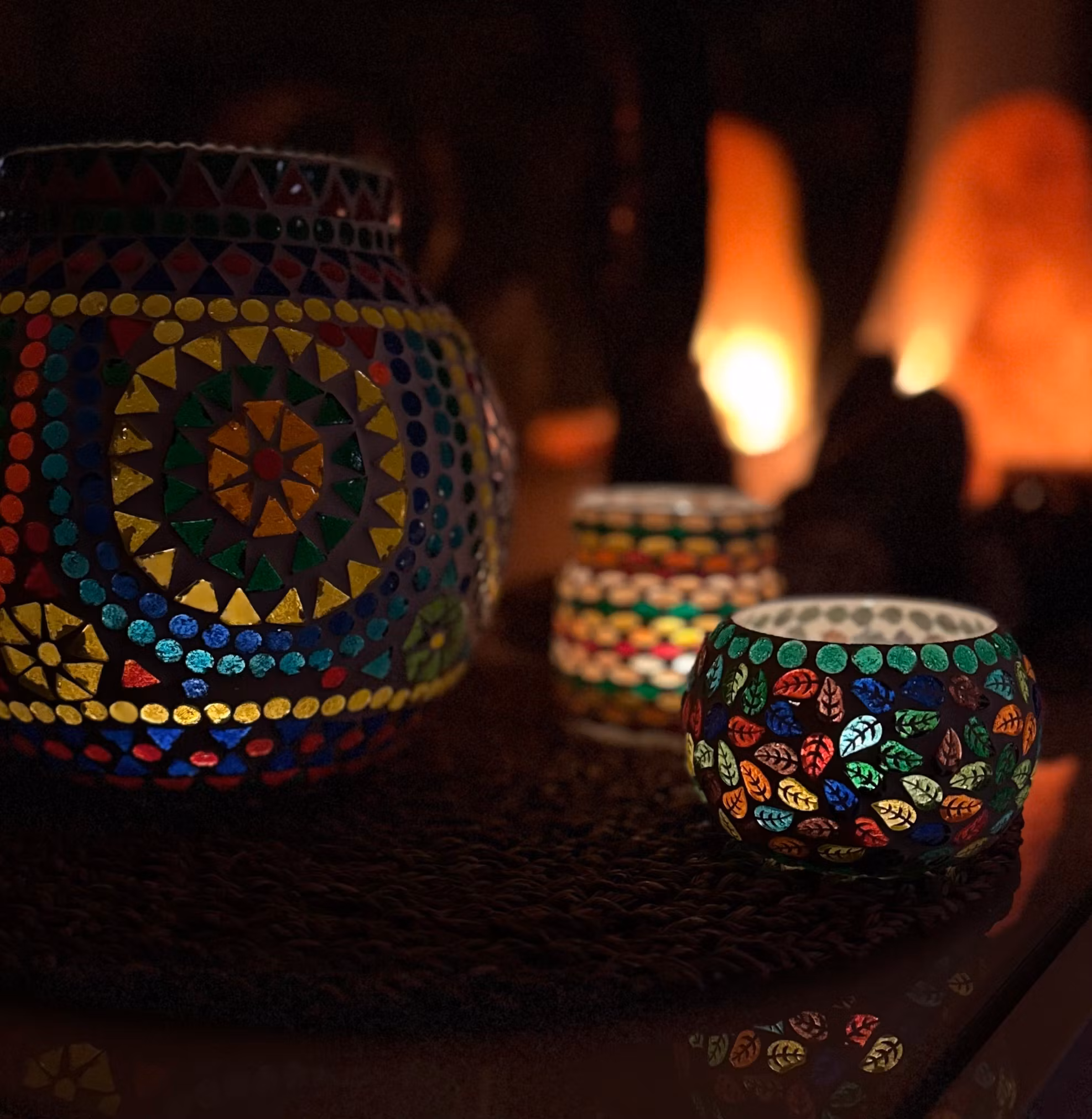 Vacker handmålad Mosaik värmeljuslykta